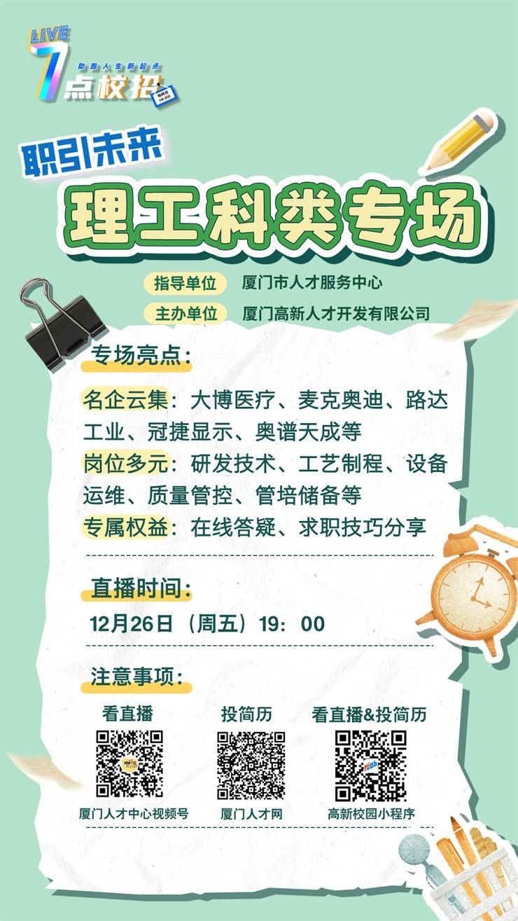宣讲主题:厦门市人才服务中心职引未来招聘