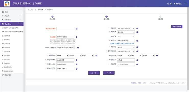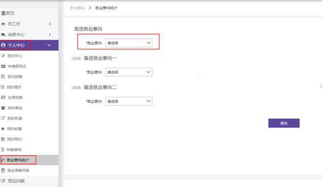 根据本人所选的就业意向不同,会弹出不同的需完善项目。需认真填写完成并提交。
