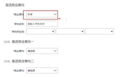 Ø 根据个人情况还可以有两个备选就业意向(非必填)