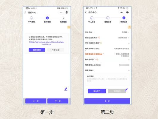 第一步:继续完善签约信息,点击【下一步】生成签约链接,将链接发至签约企业进一步完善。