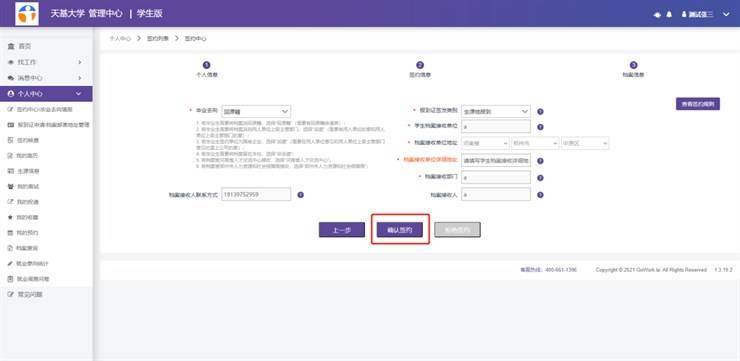 第二步:企业完善信息并提交后,学生在后台查看已更新用人单位信息的签约,确认无误点击【确认签约】提交审核。