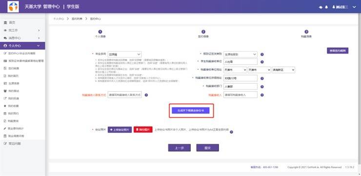 第一步:继续完善签约信息,填写完毕后,点击下【生成并下载就业协议书】。